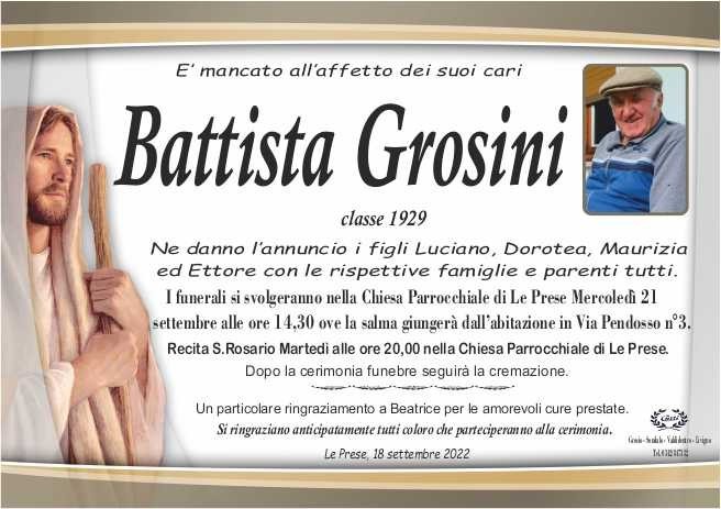 Lascia un messaggio di cordoglio, lo recapiteremo ai familiari di Grosini Battista