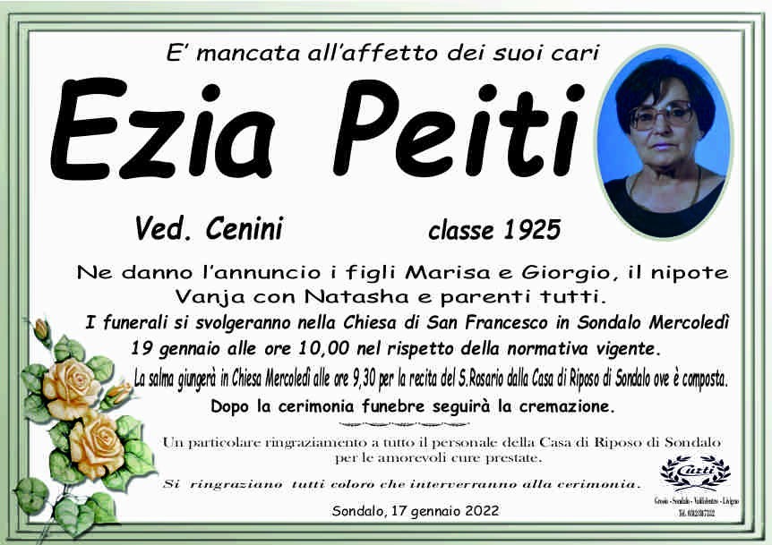 Lascia un messaggio di cordoglio, lo recapiteremo ai familiari di Lutto Peiti Ezia