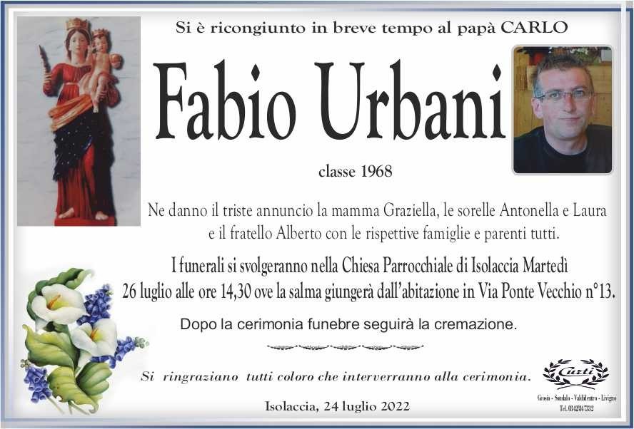 Lascia un messaggio di cordoglio, lo recapiteremo ai familiari di Lutto Urbani Fabio
