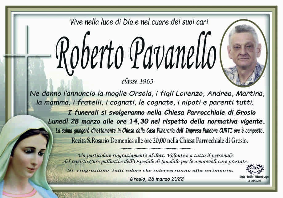 Lascia un messaggio di cordoglio, lo recapiteremo ai familiari di Pavanello Roberto