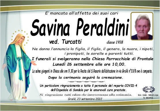 Lascia un messaggio di cordoglio, lo recapiteremo ai familiari di Peraldini Savina