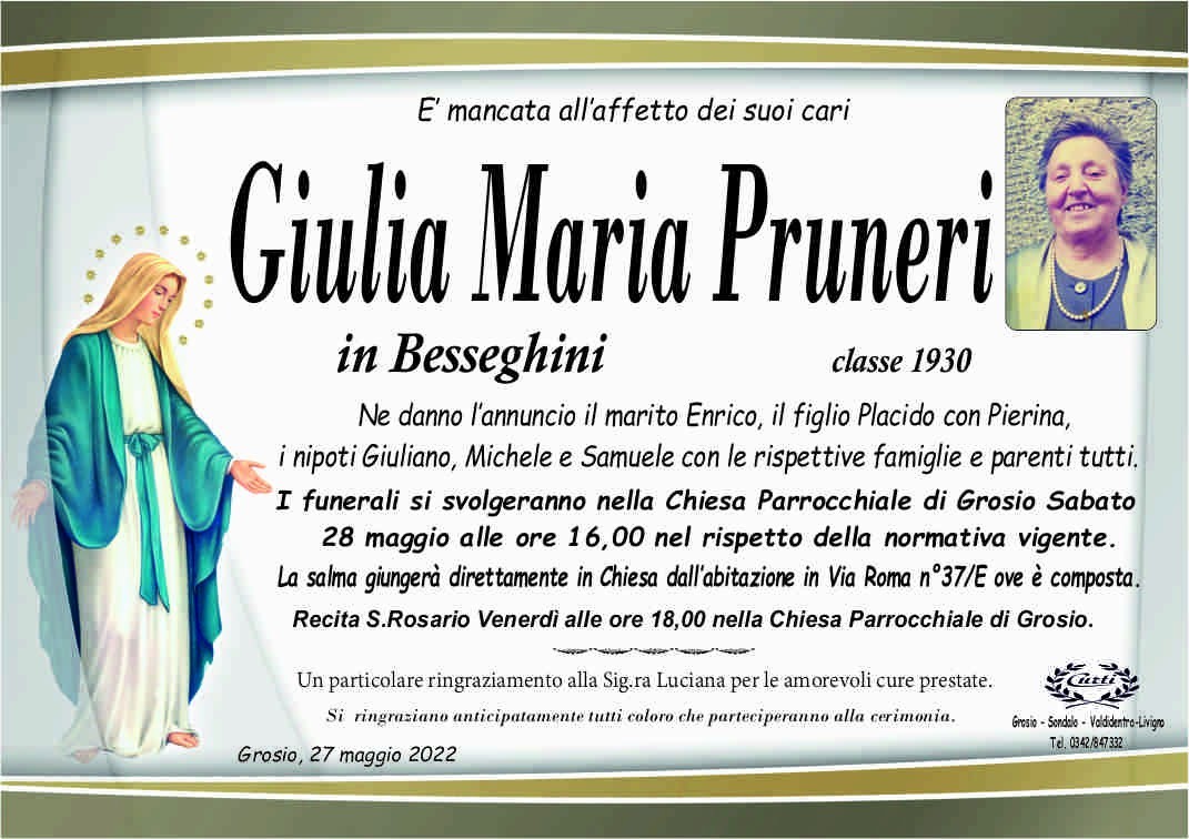 Lascia un messaggio di cordoglio, lo recapiteremo ai familiari di Pruneri Giulia Maria
