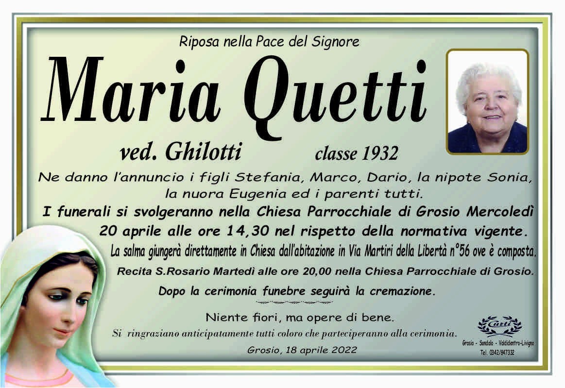 Lascia un messaggio di cordoglio, lo recapiteremo ai familiari di Quetti Maria