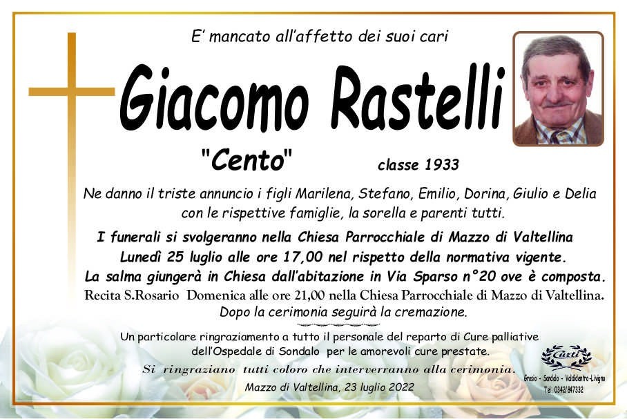Lascia un messaggio di cordoglio, lo recapiteremo ai familiari di Rastelli Giacomo