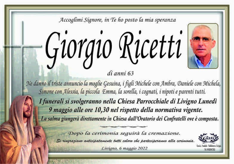 Lascia un messaggio di cordoglio, lo recapiteremo ai familiari di Ricetti Giorgio