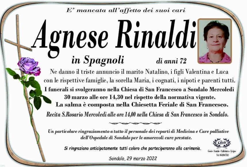 Lascia un messaggio di cordoglio, lo recapiteremo ai familiari di Rinaldi Agnese