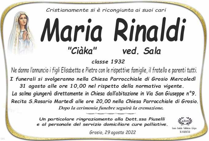 Lascia un messaggio di cordoglio, lo recapiteremo ai familiari di Rinaldi Maria
