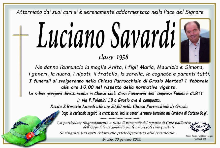 Lascia un messaggio di cordoglio, lo recapiteremo ai familiari di Savardi Luciano