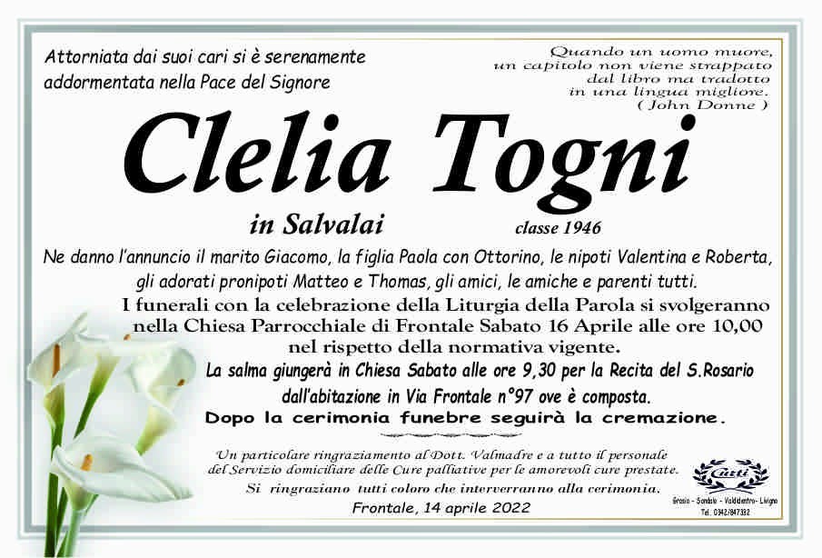 Lascia un messaggio di cordoglio, lo recapiteremo ai familiari di Togni Clelia
