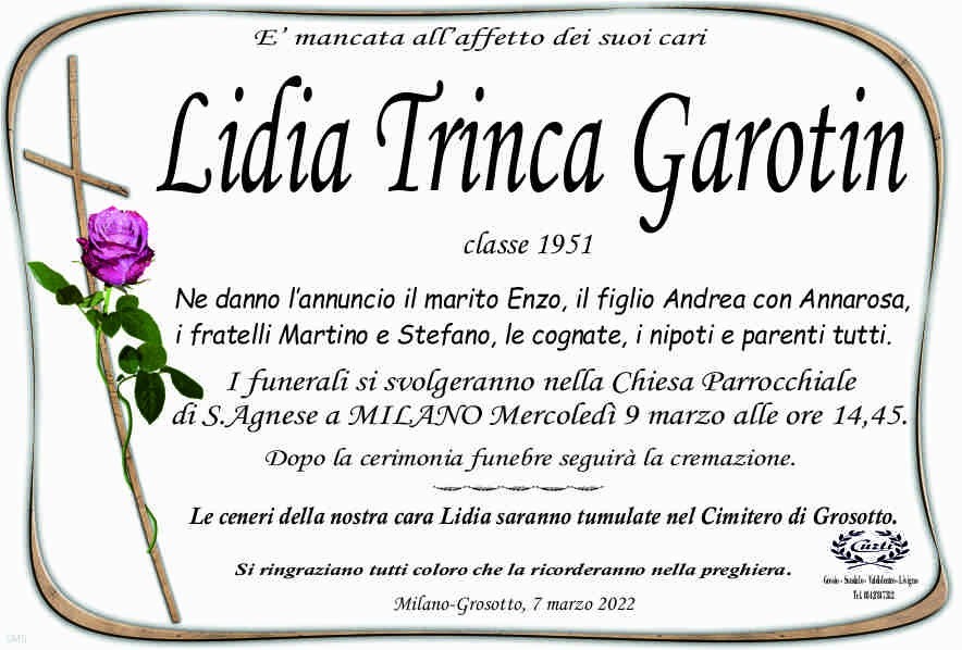 Lascia un messaggio di cordoglio, lo recapiteremo ai familiari di Trinca Garotin Lidia