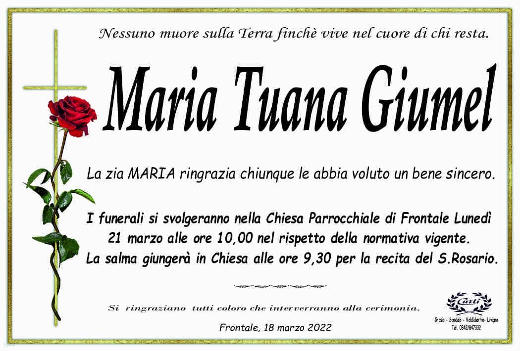 Lascia un messaggio di cordoglio, lo recapiteremo ai familiari di Tuana Giumel Maria