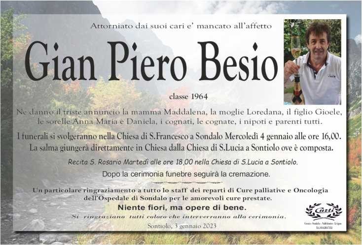 Lascia un messaggio di cordoglio, lo recapiteremo ai familiari di Besio Gian Piero
