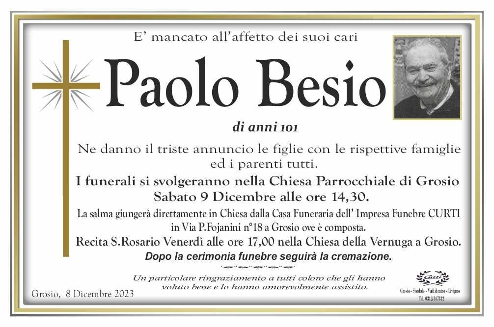 Lascia un messaggio di cordoglio, lo recapiteremo ai familiari di Besio Paolo