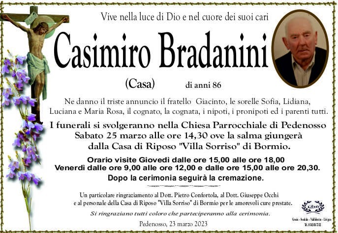 Lascia un messaggio di cordoglio, lo recapiteremo ai familiari di Bradanini Casimiro