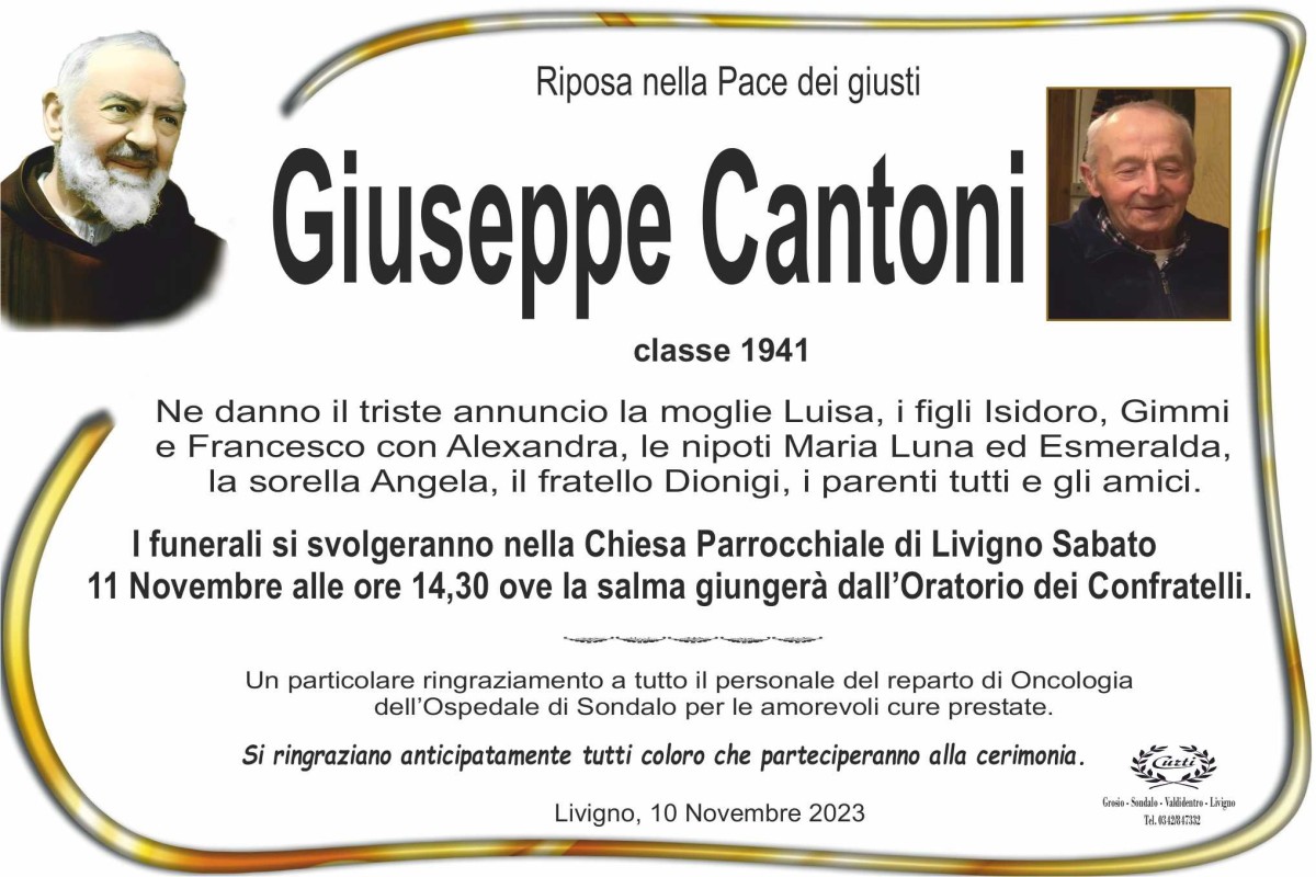 Lascia un messaggio di cordoglio, lo recapiteremo ai familiari di Cantoni Giuseppe