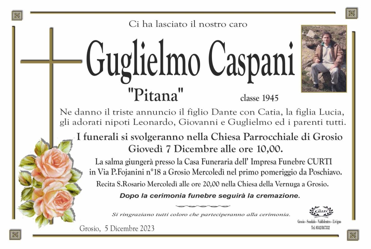 Lascia un messaggio di cordoglio, lo recapiteremo ai familiari di Caspani Guglielmo
