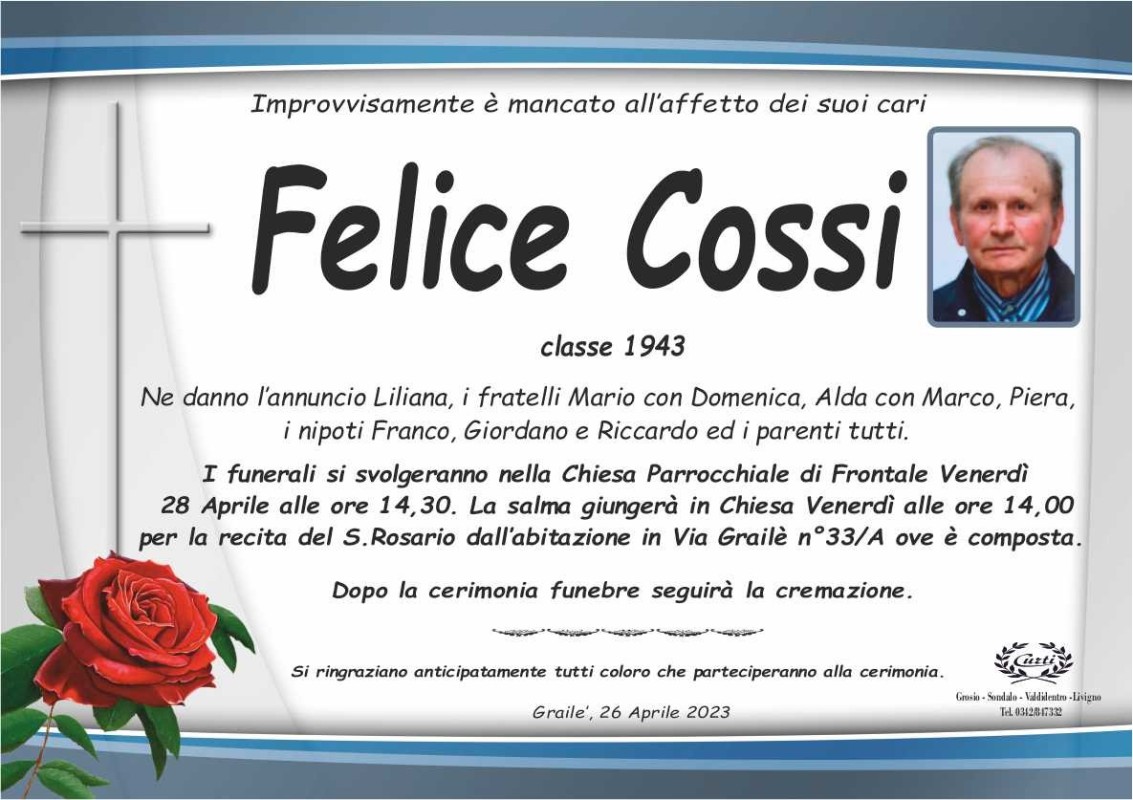 Lascia un messaggio di cordoglio, lo recapiteremo ai familiari di Cossi Felice