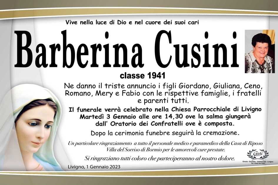 Lascia un messaggio di cordoglio, lo recapiteremo ai familiari di Cusini Barberina