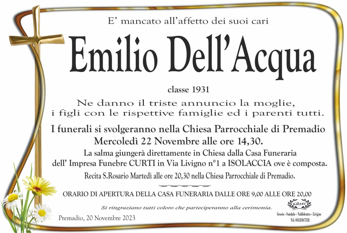Lascia un messaggio di cordoglio, lo recapiteremo ai familiari di Dell'acqua Emilio