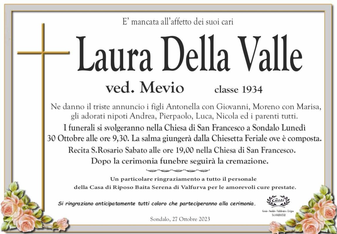 Lascia un messaggio di cordoglio, lo recapiteremo ai familiari di Della Valle Laura
