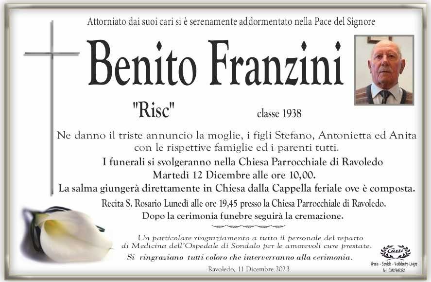 Lascia un messaggio di cordoglio, lo recapiteremo ai familiari di Franzini Benito