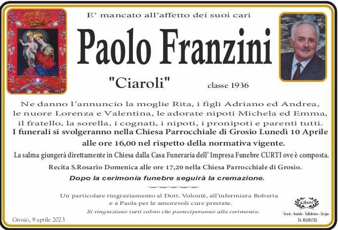 Lascia un messaggio di cordoglio, lo recapiteremo ai familiari di Franzini Paolo