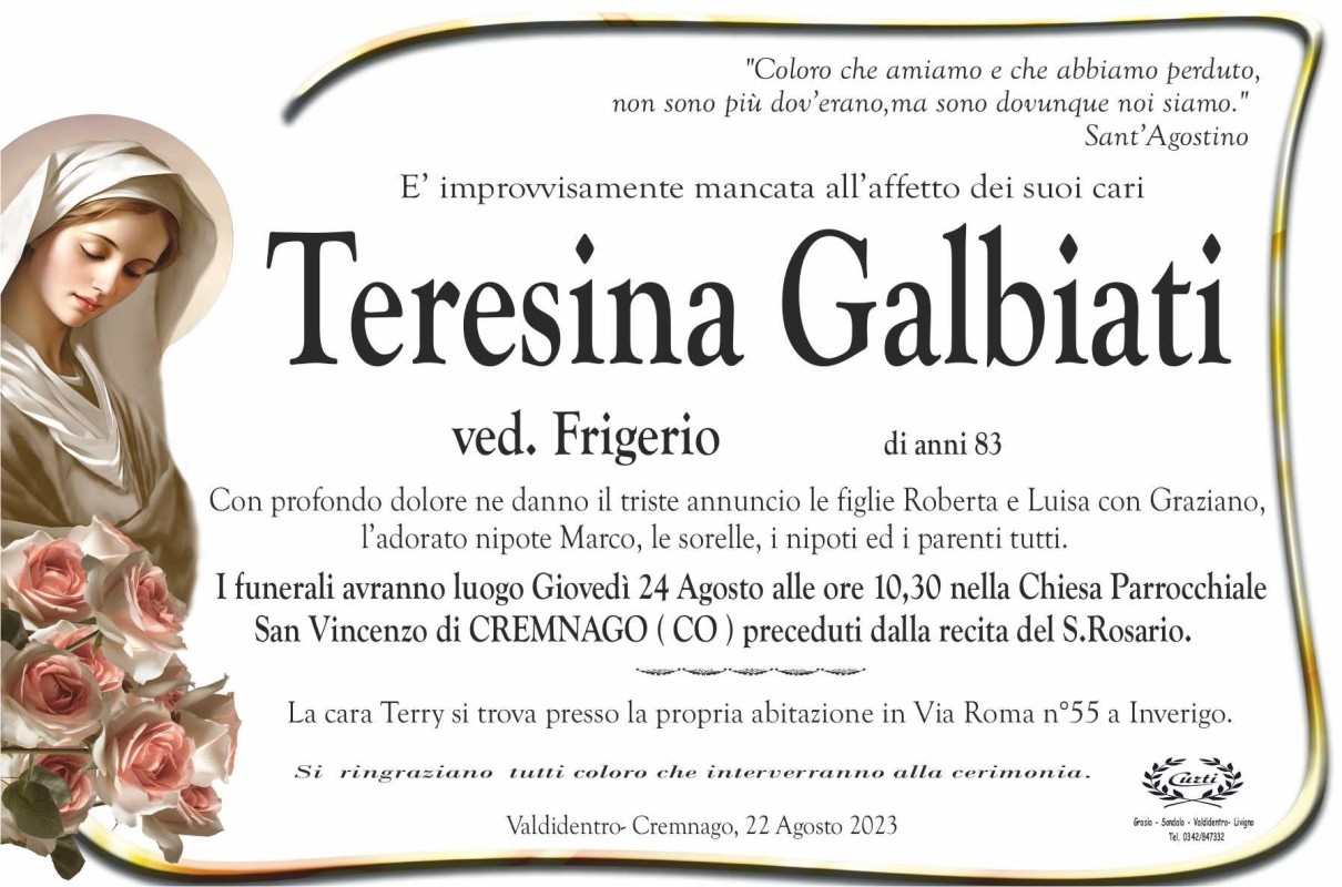 Lascia un messaggio di cordoglio, lo recapiteremo ai familiari di Galbiati Teresina
