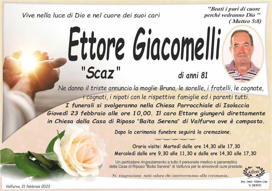 Lascia un messaggio di cordoglio, lo recapiteremo ai familiari di Giacomelli Ettore