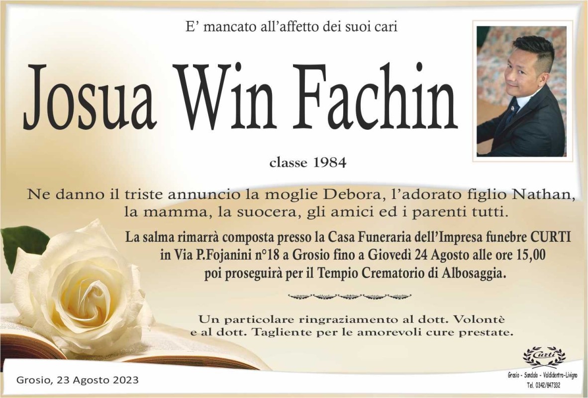 Lascia un messaggio di cordoglio, lo recapiteremo ai familiari di Josua Win Fachin