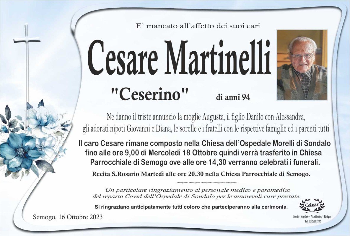 Lascia un messaggio di cordoglio, lo recapiteremo ai familiari di Martinelli Cesare