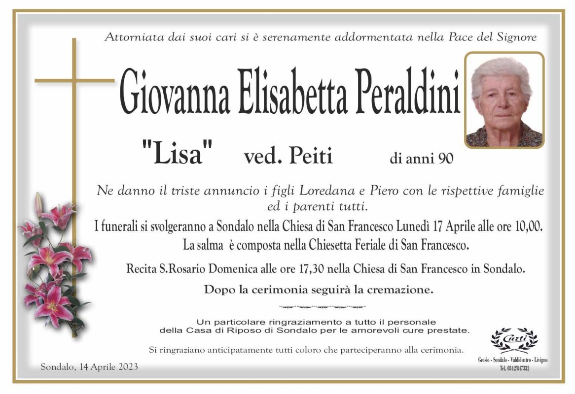 Lascia un messaggio di cordoglio, lo recapiteremo ai familiari di Peraldini Giovanna Elisabetta