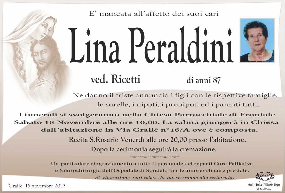 Lascia un messaggio di cordoglio, lo recapiteremo ai familiari di Peraldini Lina