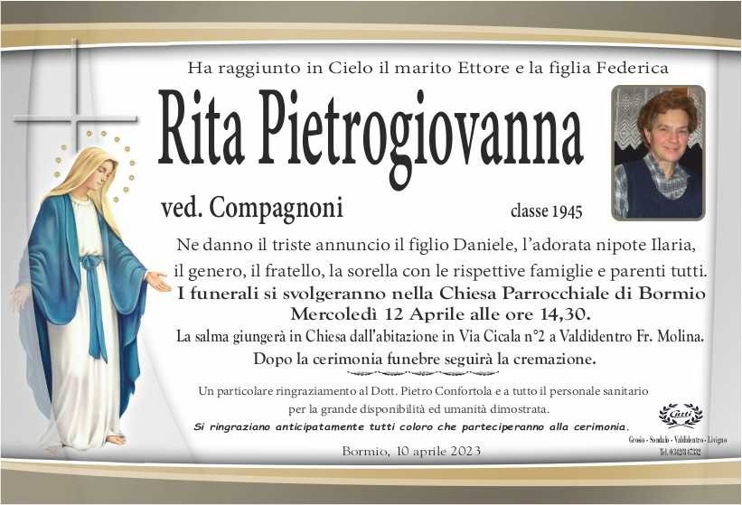 Lascia un messaggio di cordoglio, lo recapiteremo ai familiari di Pietorgiovanna Rita