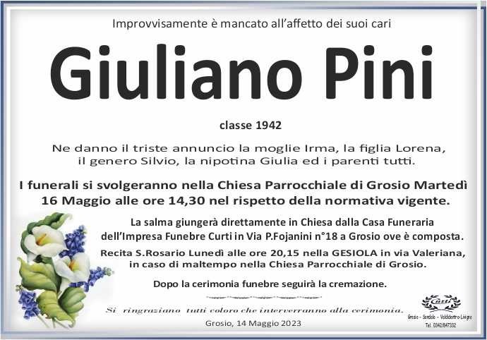 Lascia un messaggio di cordoglio, lo recapiteremo ai familiari di Pini Giuliano