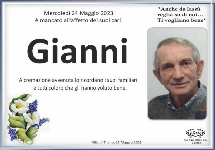 Lascia un messaggio di cordoglio, lo recapiteremo ai familiari di Poletti Gianni
