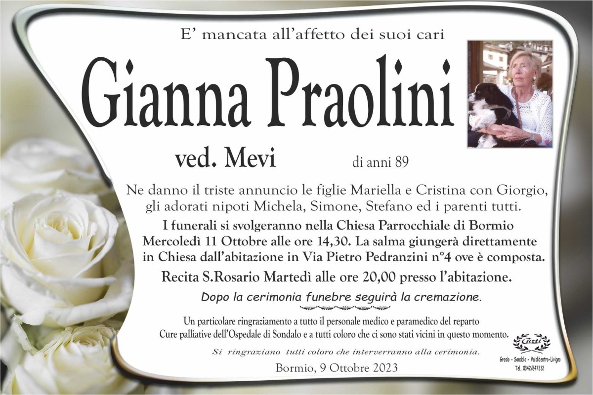 Lascia un messaggio di cordoglio, lo recapiteremo ai familiari di Praolini Gianna