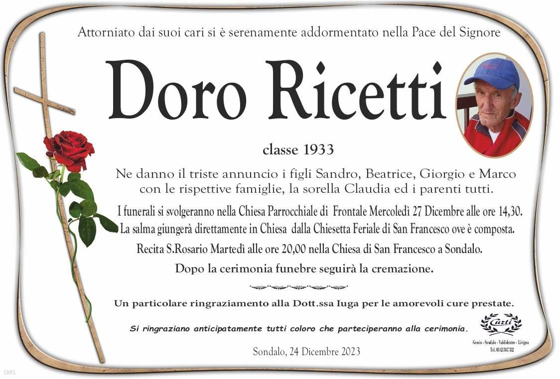 Lascia un messaggio di cordoglio, lo recapiteremo ai familiari di Ricetti Doro