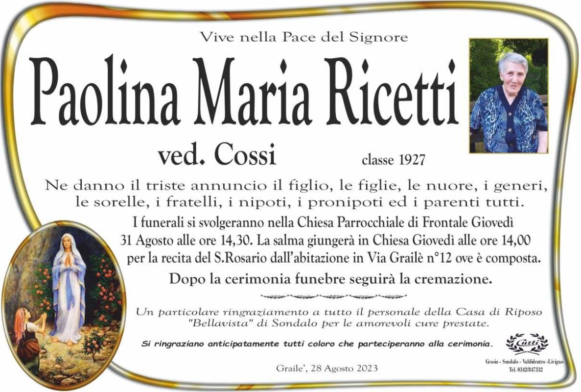 Lascia un messaggio di cordoglio, lo recapiteremo ai familiari di Ricetti Paolina Maria