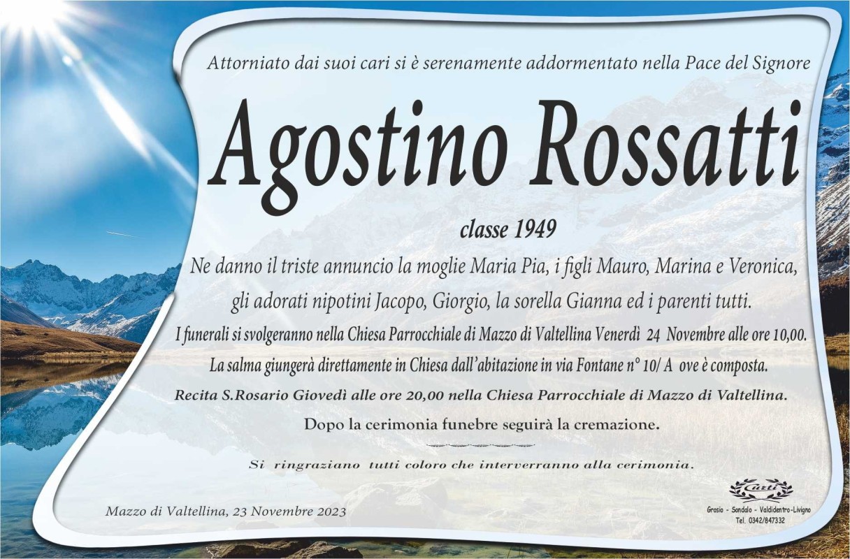 Lascia un messaggio di cordoglio, lo recapiteremo ai familiari di Rossatti Agostino