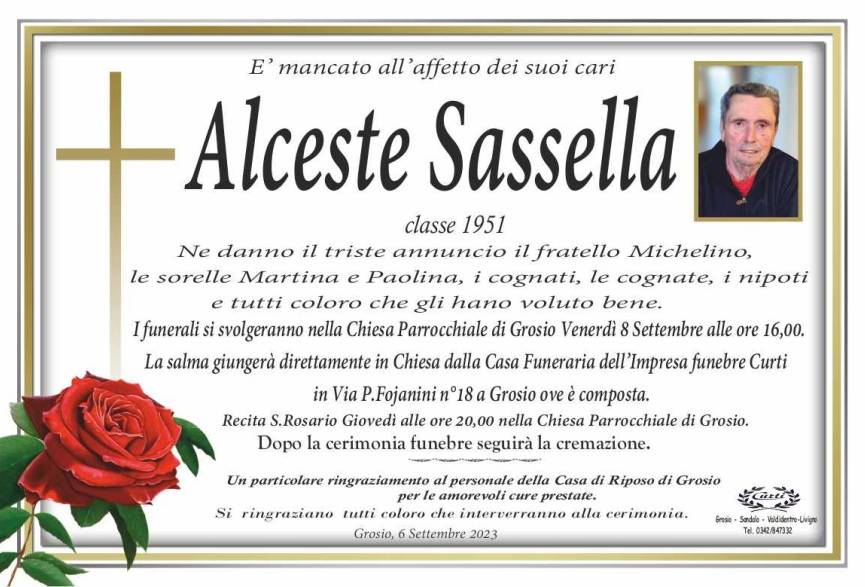 Lascia un messaggio di cordoglio, lo recapiteremo ai familiari di Sassella Alceste