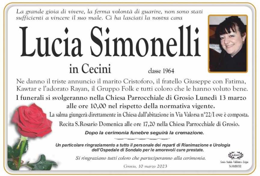 Lascia un messaggio di cordoglio, lo recapiteremo ai familiari di Simonelli Lucia