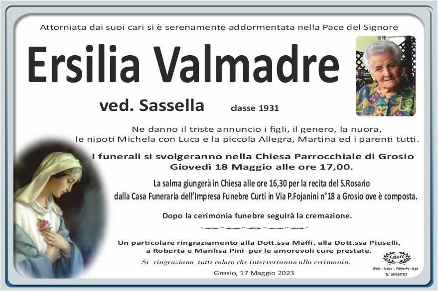 Lascia un messaggio di cordoglio, lo recapiteremo ai familiari di Valmadre Ersilia