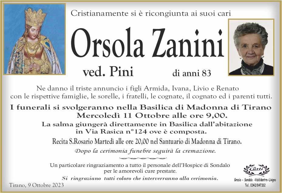 Lascia un messaggio di cordoglio, lo recapiteremo ai familiari di Zanini Orsola