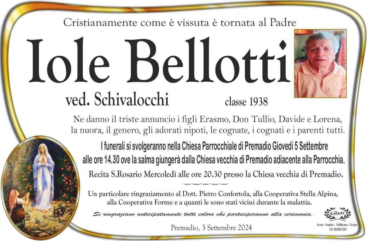 Lascia un messaggio di cordoglio, lo recapiteremo ai familiari di Bellotti Iole