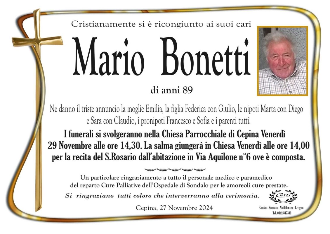 Lascia un messaggio di cordoglio, lo recapiteremo ai familiari di Bonetti Mario