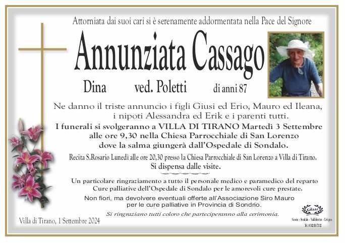 Lascia un messaggio di cordoglio, lo recapiteremo ai familiari di Cassago Annunziata Dina