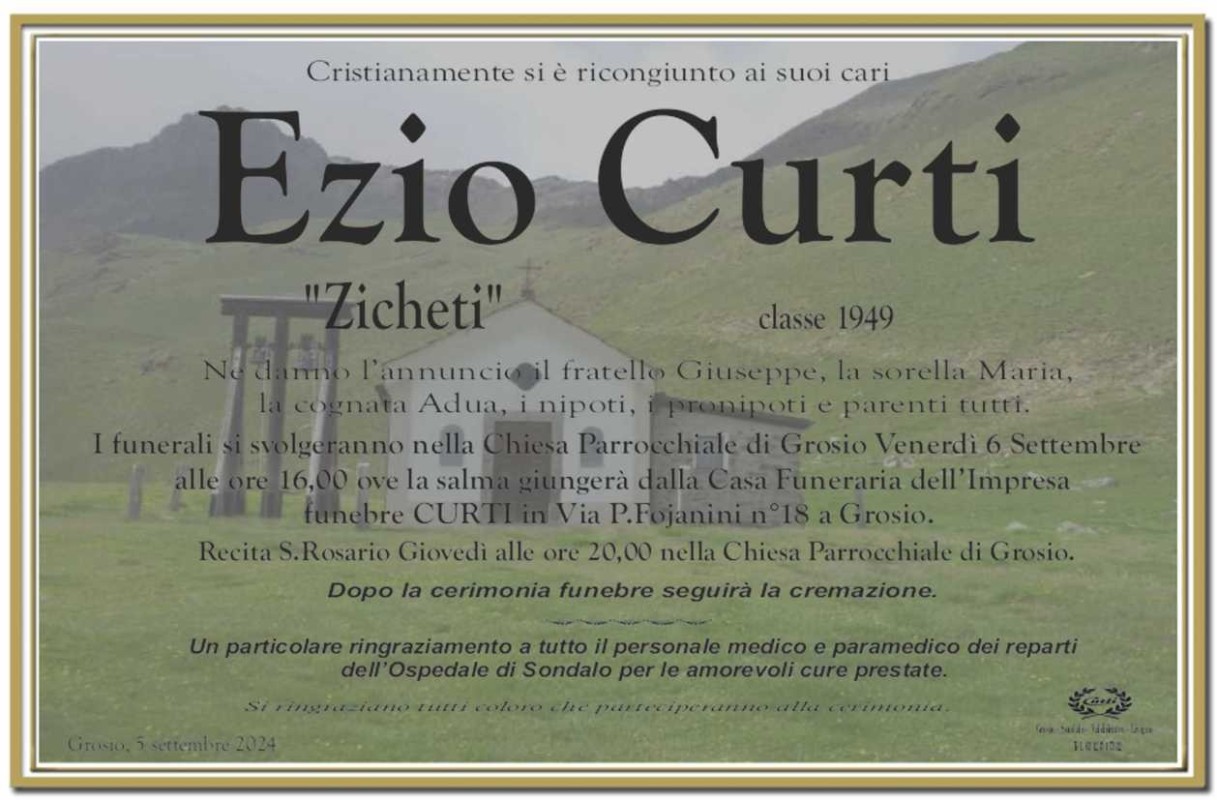 Lascia un messaggio di cordoglio, lo recapiteremo ai familiari di Curti Ezio