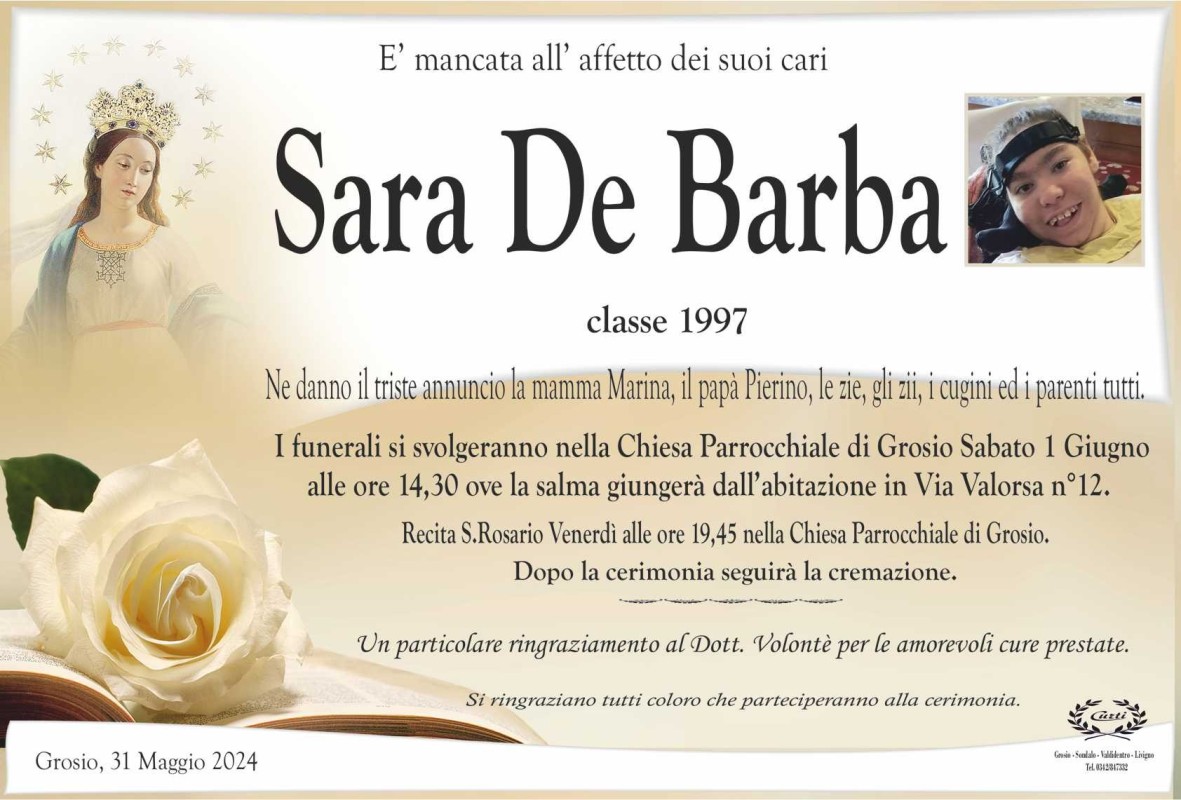 Lascia un messaggio di cordoglio, lo recapiteremo ai familiari di De Barba Sara