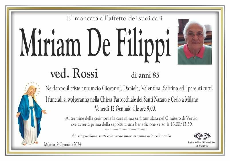 Lascia un messaggio di cordoglio, lo recapiteremo ai familiari di De Filippi Miriam