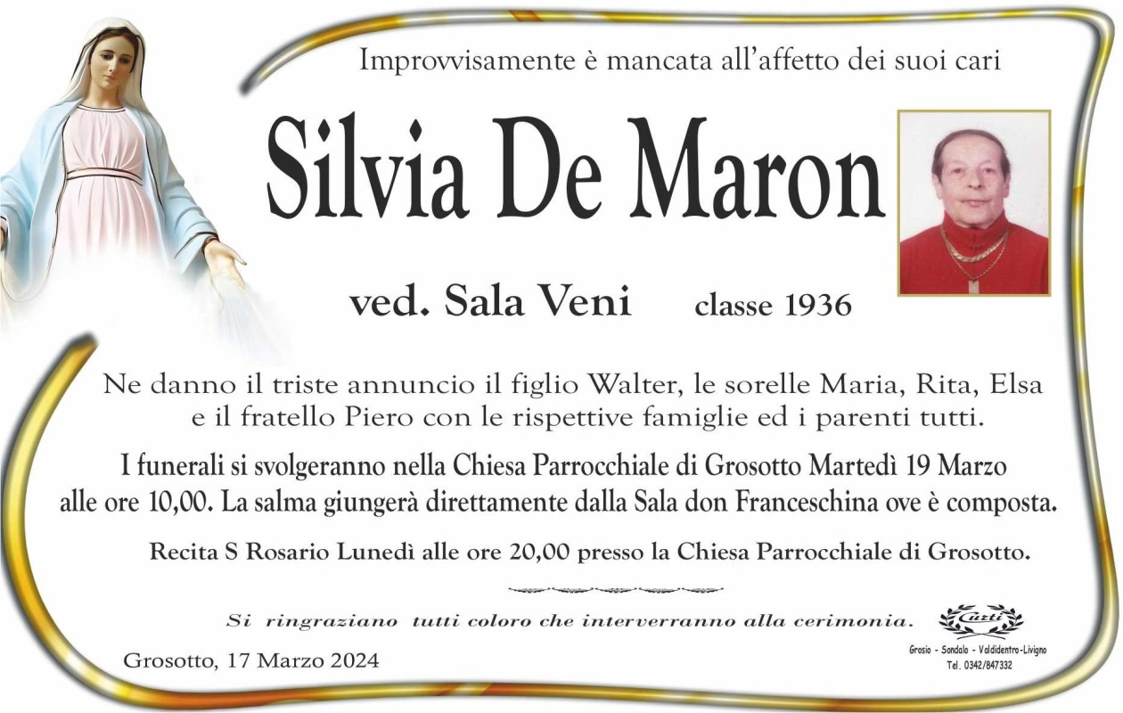 Lascia un messaggio di cordoglio, lo recapiteremo ai familiari di De Maron Silvia